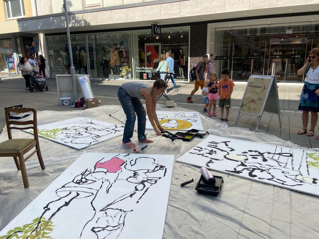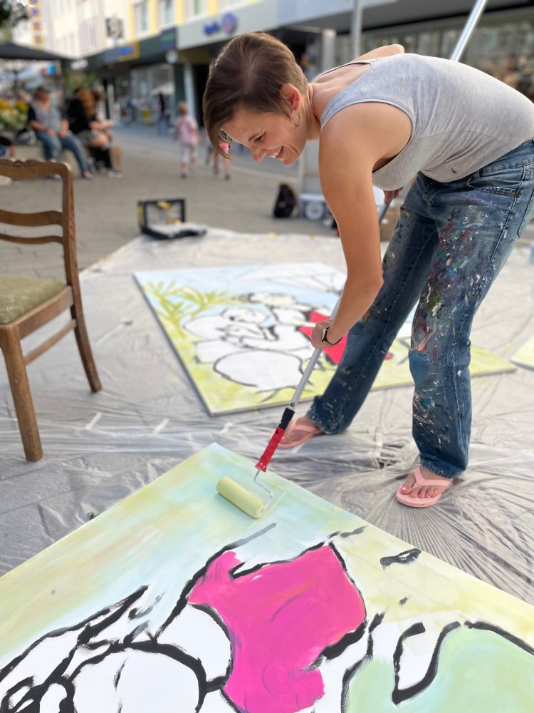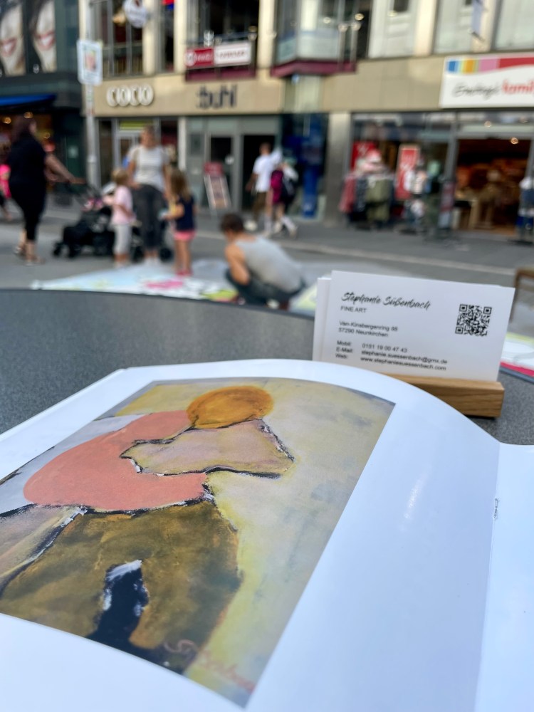 Morgen nachmittag, 20.08.2022, geht`s los!!!! von 15-18:00 könnt ihr mich live und in Farbe in der Fußgängerzone in Siegen, Bahnhofstraße 14 (vor dem C&A) in Aktion sehen. Vor Ort werde ich großformatige Leinwände spontan und intuitiv auf einem Stuhl stehend und mit meiner Farbrolle in der Hand gestalten. Ich freue mich schon sehr und fände…
