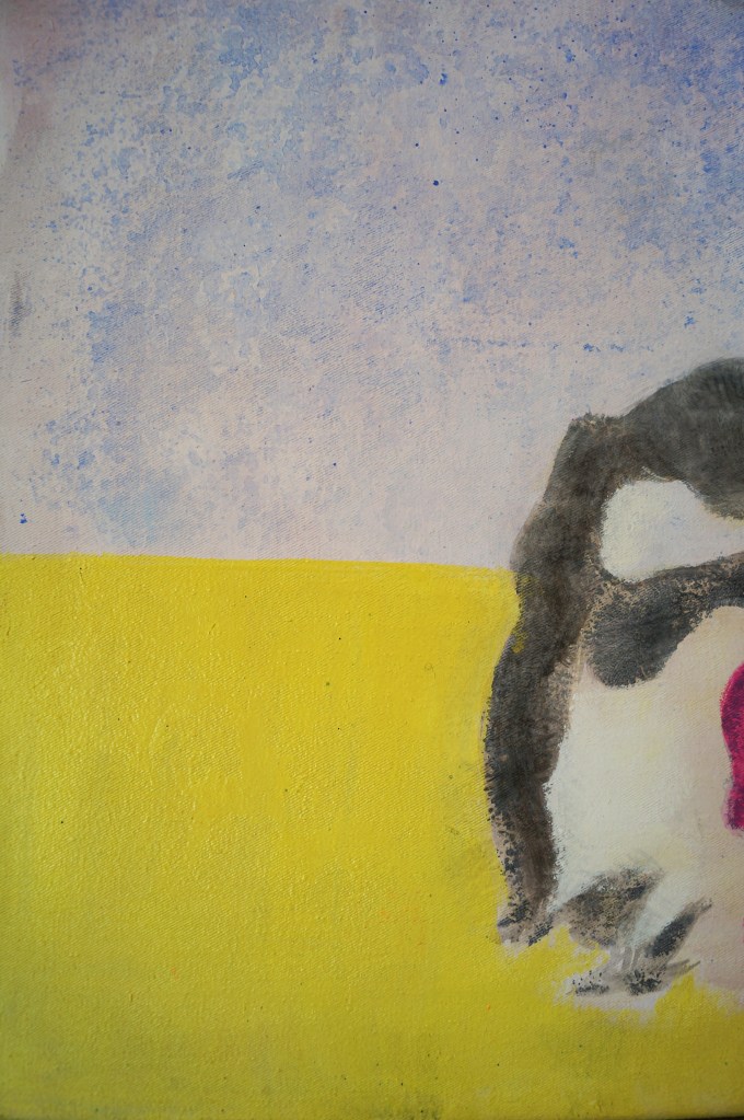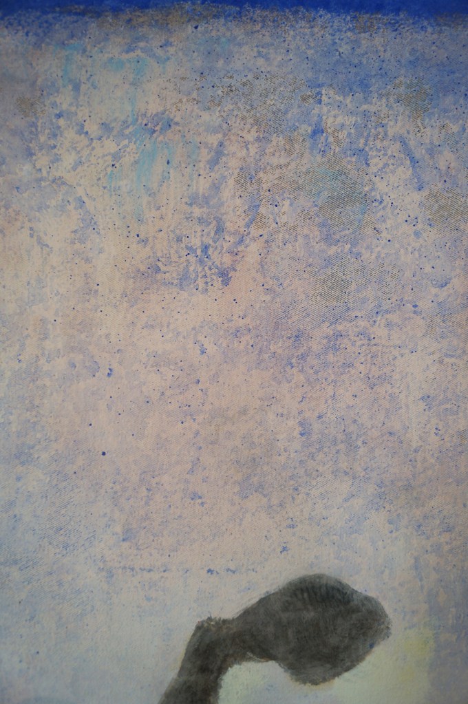 Dieses Bild stellt zwei Figuren dar, die sich ihren Weg im Regen suchten. Es regnete lange und viel und dennoch lag ein zarter Hauch von Sonnenschein in der Luft. Der Horizont versprach besseres Wetter und so liefen die zwei weiter, immer weiter Richtung Horizont.