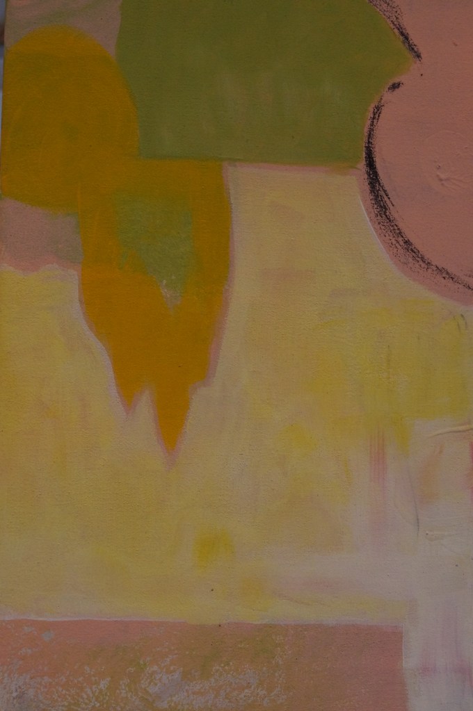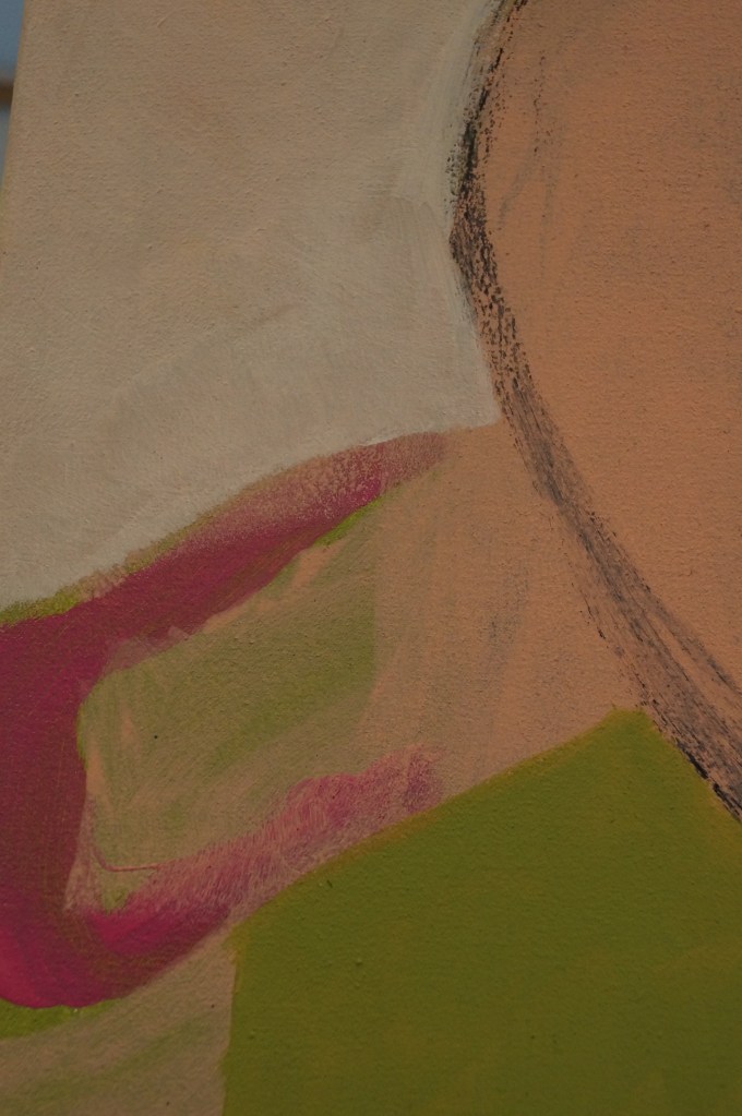 Inspiriert vom kindlichen Chaos bei uns Zuhause entstand dieses Werk mit dem Titel „what`s up“. Mit Kindern im Haus ist immer etwas los, alles scheint in Bewegung und in Unordnung zu sein: Spielzeuge liegen herum und es werden immer mehr davon geholt anstatt vorheriges wegzuräumen. Vieles bleibt einfach so stehen und liegen. Und dennoch herrscht immer eine ansteckende Fröhlichkeit vor, die sich hier in ebenso positiven Farben widerspiegelt.